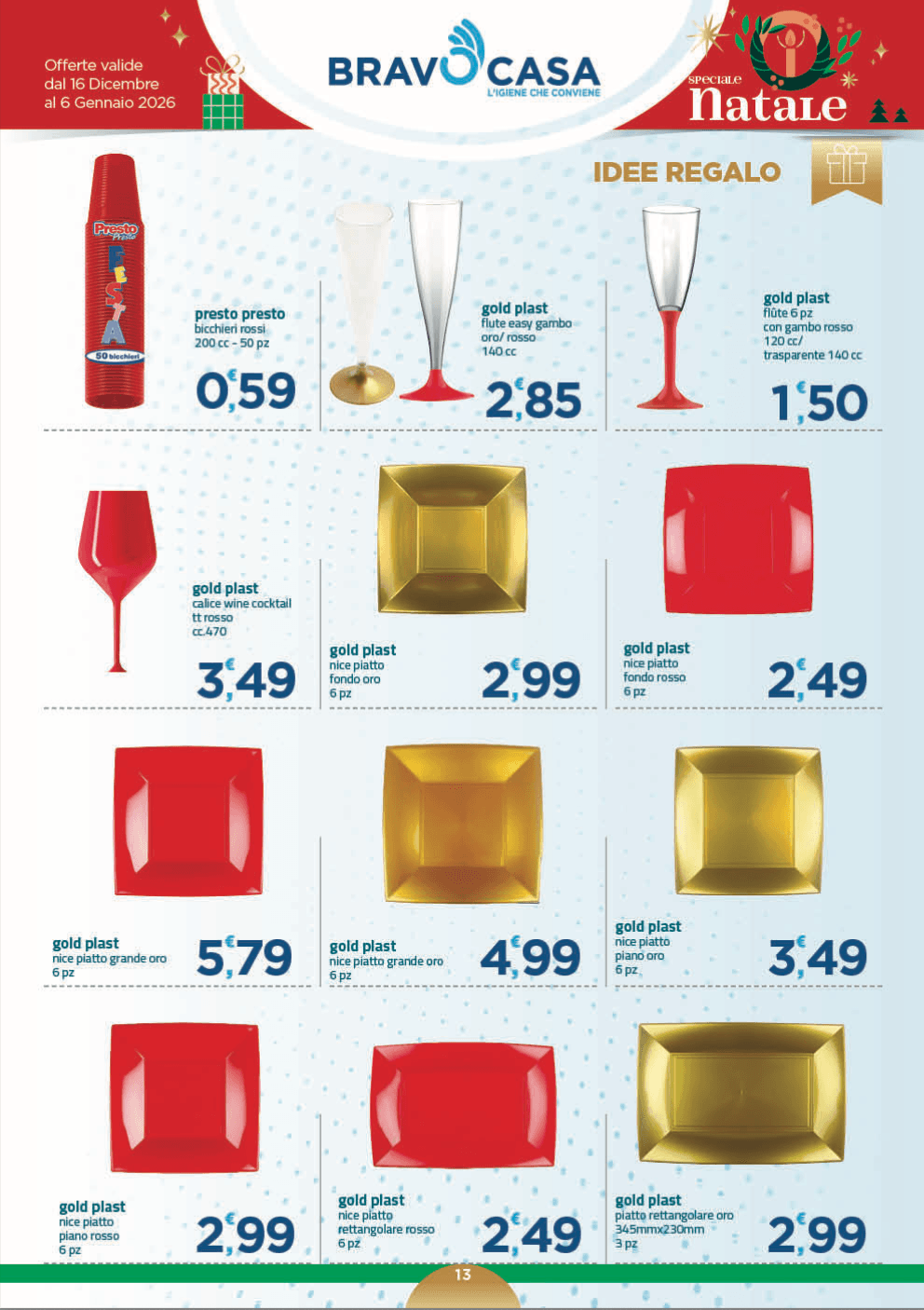Bravo Casa è lo store in cui trovare un vastissimo assortimento di prodotti che vanno dalla pulizia per la casa alla cura della persona, il make-up trova un suo spazio dedicato, come anche tutto ciò che occorre per rendere una festa un momento indimenticabile. Ed ancora, attrezzi per il bricolage, materiale elettrico e per le auto e tutto a prezzi vantaggiosi. Bravo Casa garantisce e tutela i sui clienti offrendo prodotti di qualità alla portata di tutti, perché la convenienza è un impegno preso ed una promessa da mantenere.