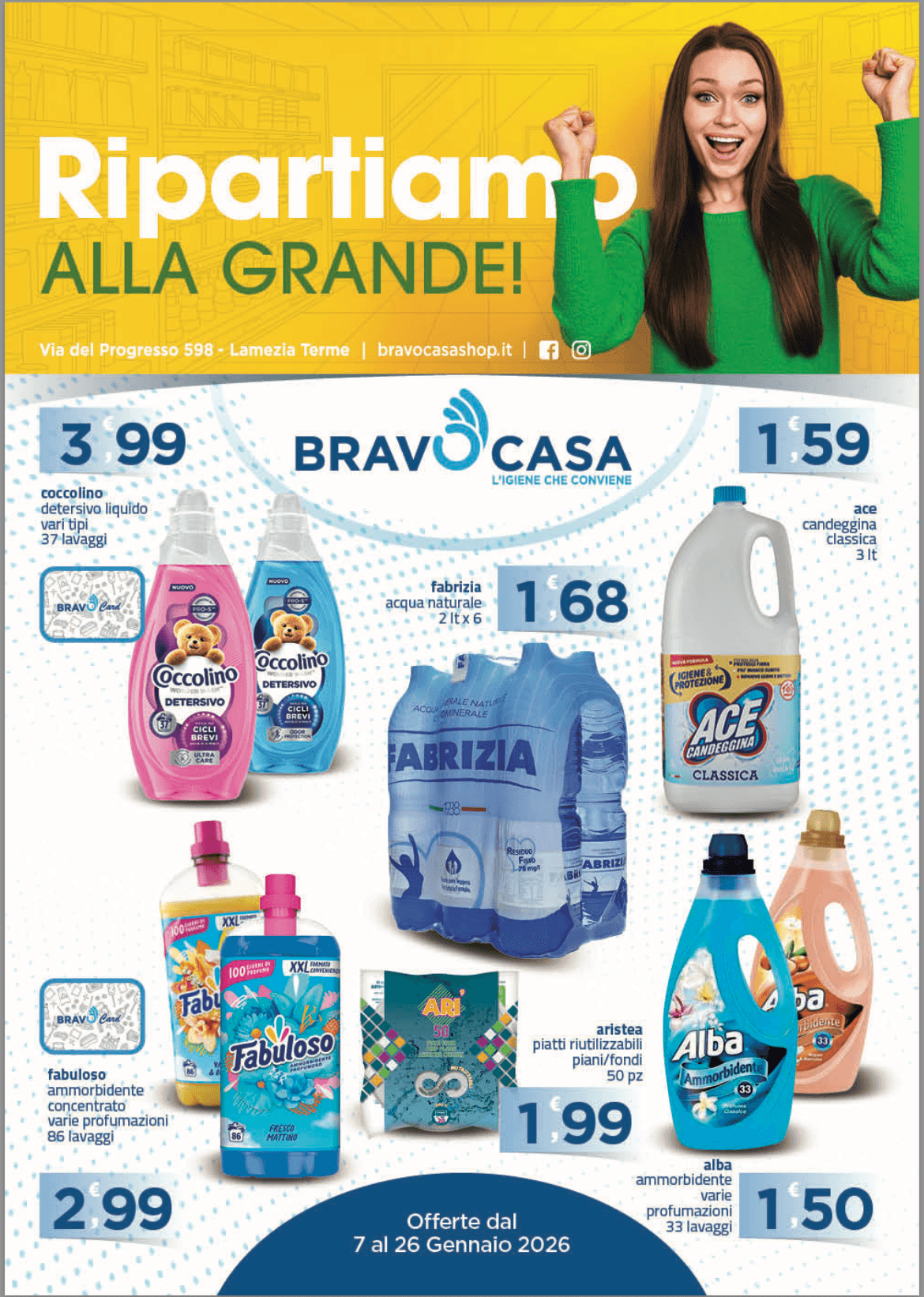 Frutto della visione di professionisti di esperienza pluriennale, Bravo Casa è una realtà nuova, uno store progettato su spazi grandi e accoglienti, che propone un’offerta di prodotti ampia in grado di soddisfare anche i clienti più esigenti. Qualità e convenienza sono i valori di punta di Bravo Casa, in cui trovano spazio prodotti per la cura della persona e della casa, senza dimenticare gli amici a 4 zampe. Bravo Casa sceglie solo i migliori brand ma resta aggiornato sulle novità di mercato, in perfetto equilibrio tra tradizione e modernità.