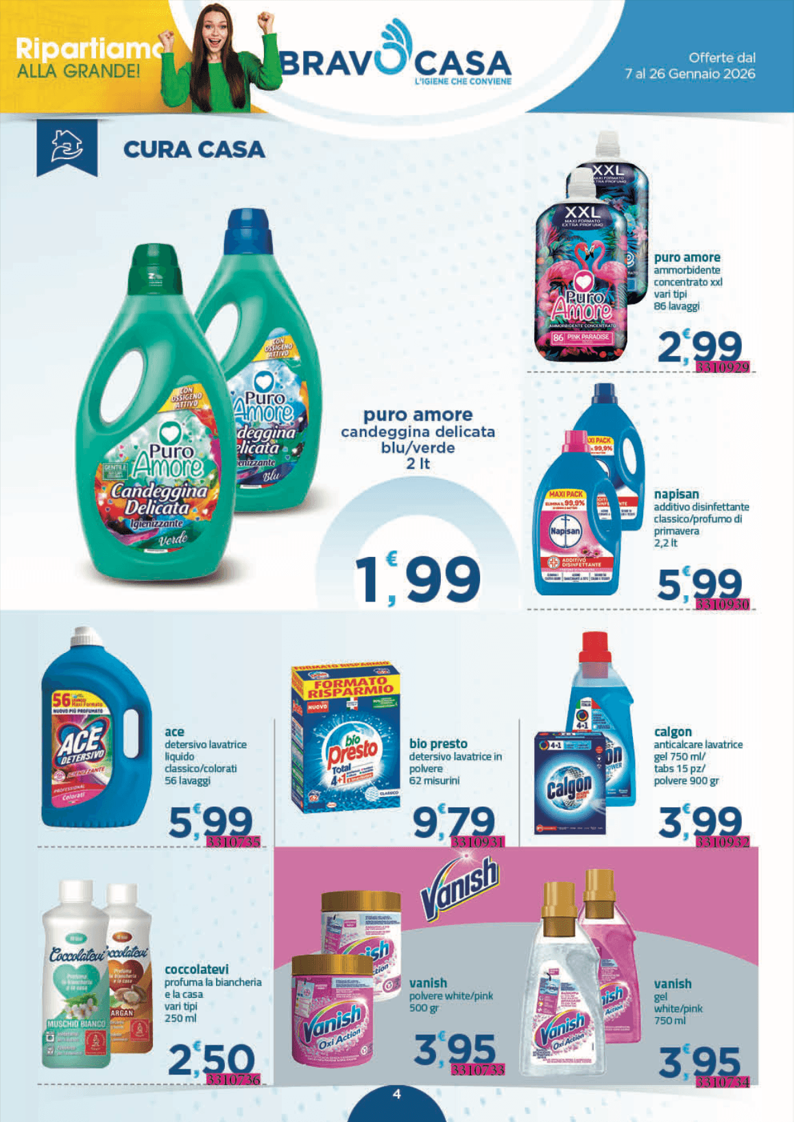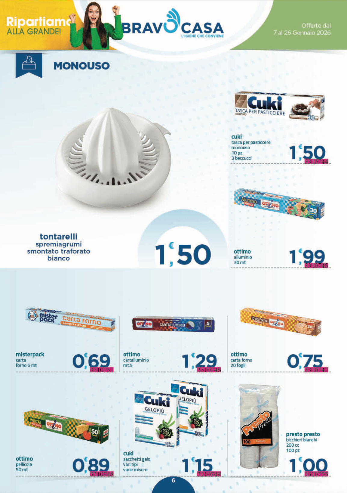 Bravo Casa è lo store in cui trovare un vastissimo assortimento di prodotti che vanno dalla pulizia per la casa alla cura della persona, il make-up trova un suo spazio dedicato, come anche tutto ciò che occorre per rendere una festa un momento indimenticabile. Ed ancora, attrezzi per il bricolage, materiale elettrico e per le auto e tutto a prezzi vantaggiosi. Bravo Casa garantisce e tutela i sui clienti offrendo prodotti di qualità alla portata di tutti, perché la convenienza è un impegno preso ed una promessa da mantenere.